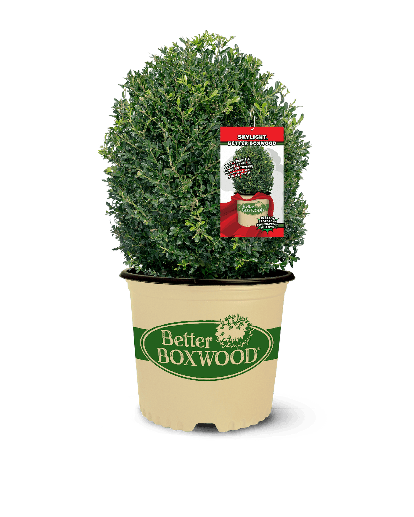 The grandest member of the Better Boxwood collection, standing impressively at 6–8 feet tall and 3–4 feet wide. With its fast growth rate and mid-green, evergreen foliage that lightens in spring, Skylight Boxwood offers quick landscape transformations and a heightened aesthetic appeal. Ideal for creating sophisticated hedges, topiaries, or boundary plantings, and it serves as a stunning solitary centerpiece. Fitting seamlessly into any garden space and providing privacy without overwhelming your landscape. Resistant to boxwood blight, ensuring its durability and long-lasting beauty.